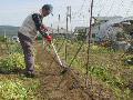 5時半に起床。今日は誕生日だ。高齢者の一人になってしまった。コーヒー飲みながら、日誌記入・今日の計画・農作業の計画を立てる。6時過ぎに公民館へ行き、保管していた埋立てごみ8個をごみ置場に運び出す。自宅のごみも出して、7時に朝食・新聞・テレビ。2階でHP入力・写真加工・自治会記録と続ける。途中で愛犬の散歩をする。愛犬15歳で私は70歳。どちらが先に逝くかわからない。5月自治会記録の準備をして、乾電池と焼酎の買い出し。9時半過ぎに福井農園に出かける。エダマメを3列種まきして、土寄せして水をかける。これからが大変だった。今回は不織布の代わりに、防虫ネットを張らなければならない。広げながら鉄杭やパイプを両端に重しとして並べておく。大塘のUさんが来て、野菜談義をする。