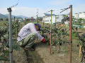 エンドウのネットを草刈りしやすいように引き上げました。 |