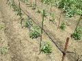 ピーマンの支柱にロープを張りました。