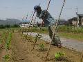 昼食・テレビ。2時に福井農園に出かける。サトイモに肥料をまいて、土寄せをする。エダマメの最後の畝の土寄せをして、ソラマメの収穫をする。すべて完了。ピーマン2列目の脇芽を切って、ひもかけを終える。4時に雨が降り出したので、道具を片付けて帰宅する。風呂に入る。まだ5時なのに、テレビを見ながら晩酌と夕食。ソファーでうたた寝して9時に休む。今日は農作業が充実した一日でした。