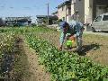 北の畑の作物に、肥料をまきました。写真は北B2のダイコンです。 |