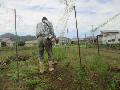3時半に起床。今日の計画と農作業計画を立てて、HP入力・写真加工・自治会入力と続ける。家内に頼まれた写真を2枚印刷して、新聞とテレビを見る。朝食。散歩をしようとしたが、愛犬は動けない。7時半に畑のロープを取りに行き、ナス6個を収穫する。8時半Ho会長の家を探しに行く。9時に福井農園に行き、北A2と北B1を耕して、東4・東3・西3の空き地を耕す。アスパラの畝にパイプ9本を打ち込み、ニンジンの草取りをする。