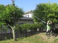 3時半に起床。1階の和室で、今日の計画と農作業計画を立てる。2階の部屋で、HP入力・写真加工・自治会入力と続ける。5時半からは新聞・テレビ。自宅のごみ出しをして、ごみ置場の掃除をする。公民館のポリバケツ等を袋に詰めて、ごみ置場に出す。愛犬の散歩を済ませて、剪定道具を庭に集める。7時朝食を済ませて、道具を車に積む。下代公園に行き、8時からTu区長とNa区長の三人で、カシワの剪定作業を始める。高枝切りのこで大きな枝を切り落とし、どうにか10本ほどが終わった。このあとハサミで分解したり、丸鋸で分割していく。45Lの透明袋に詰めたら20個になった。薪ストーブを持っている人に電話をして、燃料にしてほしいと依頼する。11時に解散して自宅で休憩。キュウリの種を1袋買う。