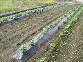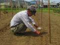 大量の草の種が落ちています。来年注意。 ネットを利用して、キュウリの種まきをします。 |