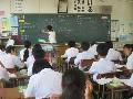 五霊中の2年生の授業です。 連立方程式の代入法の解き方を学習しています。 |