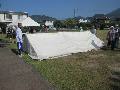 夏祭りの準備です。大変なのはテント張りです。 下代は5個のテントがいります。応援がありました。 用水路の大量の藻を、Na区長とSi区長が処理しました。 |