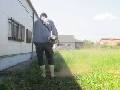 ヒマワリを草刈り機で処分しました。 50mほどの里道を草刈りしました。 |