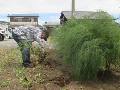 ゴーヤのツルをネットから外しました。 アスパラの横を耕して、土をアスパラに載せました。 |