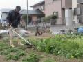 草刈りは楽しい作業ですが、袋詰めは大変です。 育ちすぎた野菜は、草刈り機で処分します。 |