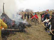 3時半に起床。日誌記入と今日の計画。2階でHP入力と自治会入力。協議会と連合会の記録を印刷。過去の記録から、作物植付けの期日を農作業手帳にメモをしておく。コーヒー・新聞・テレビ。スーツの整理。7時過ぎに朝食。炊きたてご飯のときは、卵かけご飯だ。今後の自治会の作業を確認して、4丁目のごみ置場に出かける。埋立てごみを整理して、燃える物は指定袋に詰める。公民館へ行き、埋立てごみの袋をごみ置場近くに移動しておく。9時前にバイクにまたがり、5町内のどんどやを見に行く。白川河川敷に、地域の役員や子供会など100人近くが来ている。30分ほどで弱火になったので、皆がもちを焼き始める。10時からは3町内のどんどやがあるので、そちらに移動する。ここは田んぼにやぐらが組んであり、簡単な神事のあと点火。ここもトン汁やきな粉もち、ミカンやジュースが準備してあった。ご馳走になって、11時に帰宅する。日誌記入とテレビ。