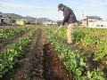 昼食・テレビ。1時半公園の里道に除草剤をかけてくる。2時半に福井農園に行き、東3のダイコン2列を処分する。ダイコンと葉はすべて北Eに運んで捨てる。50メートルの距離を、一輪車で5往復。ソラマメ1列に土寄せをしておく。5時に風呂に入って、相撲とテニスを交互に見ながら晩酌と夕食。7時半に休む。
