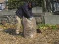 袋に刈り草を詰める作業も大変です。