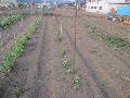 カヤは長いので、ロープで束ねています。 ソラマメに土を寄せました。倒伏防止です。 |