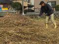 昼食・テレビはひるおびとテニス。2時に福井農園に行き、北Eの刈り草を束ねる作業をする。3束完成。90リットル袋にも刈り草を詰めて2個完成。畑にまちづくりセンターのMaさんが来て、校区防災の相談があった。ソラマメに土寄せをして、2列目が終了。北Eの草をレーキで集めておく。5時に帰宅して風呂に入る。相撲見ながら晩酌と夕食。プレバトを見ていたが、7時半に休む。