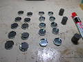 キャップに裸のマグネットを接着します。 さらにカラーマグネットを接着します。 |