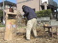 ごみ置場のネットを交換してほしいと要望あり。 東4のパイプ等をキャリーに載せて移動します。 |