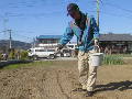 北側の空き地には、粒石灰をまきました。春は近い。 |