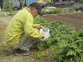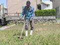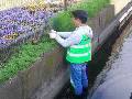 Na区長は用水路に入って、草取りをしました。