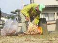 公民館の庭で掃除をしました。