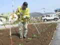 入学式は、西高太鼓の演奏で始まります。 ナス苗にパイプ20本を立てました。 |