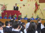 三和中入学式。代表が誓いの言葉