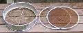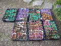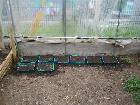 種をまくときの注意は、種の上に土をかけるときです。私は土ふるいを利用して、小さな土だけをかけました。網は三種類あります。また、数種類の種をまくと名前がわからなくなるので、プラスチックの名札を使いました。サインペンで書くと一回きりですが、鉛筆で書くと何度も使用できます。一番右の写真は、ハウス内の様子です。インゲンとサルビアは、ハウスでの種まきです。