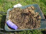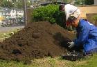 種まきの土は、何でもいいようです。山北小学校に勤務していたときは、運動場の山砂に種をまきました。もちろん畑の土がいいのですが。園芸店に行けば、専用の土が販売してあります。しかし、学校では5000株以上が必要ですから、贅沢はできません。下の写真は、黒土と赤土です。2トントラック一台分を購入します。どちらも山から掘り出した土のため、石のように硬いものが混ざっています。