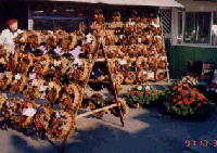 | 11月1日は、日本で言えば墓参りの日のようです。市場に出かけましたら写真のように生花やリースが所狭しと並べてありました。野菜で珍しかったのは、カラーピーマンです。驚いたのは肉の量り売りは、日本と違って5kgとかで売ります。さすがに大きい。 | ||||