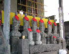 上の段に並んだ六地蔵は、すべて腰の位置で折れていて、修復してありました。ひょっとすると、神輿から落ちて割れたのかもしれません。左手に宝珠、右手に数珠を持っている地蔵です。放牛石仏よりも、数年前に造られたことになります。