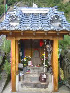 阿蘇町に「はな阿蘇美」という、大きな物産館があります。その裏・北側の道路をはさんで、この地蔵堂はあります。内牧温泉街を東へ抜けると、はな阿蘇美に着きます。左折すれば教育キャンプ場へ行く三叉路に出ますが、そのすぐ右手にあります。ここは湯山地区になります。写真のように大きな標木があり、福の神地蔵大菩薩と記されています。そばには駐車場もあります。堂の左手に長い階段がありますが、加藤清正ゆかりの「加藤右馬允墓所」等の史跡も存在します。