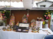 熊本市花園一町内には、まてまて地蔵と呼ばれる五体の地蔵が保存されています。平成15年9月20日(土)に、「まてまて地蔵まつり」が開催されました。地元の花園一町内には有志による保存会があり、自治会や長寿会と協力して、この地蔵祭の運営をしています。会場は、みつわ運送会社の駐車場です。催し物もたくさんあり、地域の方も毎年楽しみにしています。