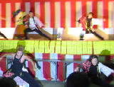 二番目の出演は、九州看護福祉大学の飛羽隊(とっぱたい)です。軽快な音楽にあわせ、激しい踊りをみせました。よさこいソーラン踊りです。動きが激しいためか、学生も汗びっしょりになっています。