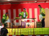三番目は、バナナのたたき売りです。たたき売り保存会の三人が、小気味よい口上を述べます。ユーモアを交えての口上は、聞く人を退屈させません。段ボール10ケースほどのバナナを、あっという間に売り尽くします。この長いセリフを覚えるのは、大変な努力がいることでしょう。