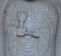 放牛地蔵の多くは、両手であるいは片手で宝珠を持っています。右手に錫杖があれば、左手に宝珠となります。この宝珠については、三省堂出版の大辞林によると「上方がとがり、火炎が燃え上がっている様子を表した玉。これによって思うことがかなえられると説く。」とありました。