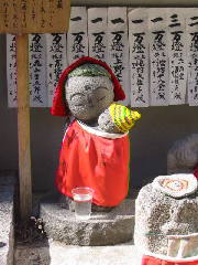 平成15年10月29日(水)から三日間、関西方面に2年生修学旅行に同行しました。30日(木)に旅館・中原(京都市)の近くに六角堂があります。京都市の中心部でもあり、徒歩で六角堂へ出かけました。そこで30体ほどのお地蔵さんを見つけました。説明書きのあった二つのお地蔵さんを紹介します。