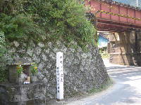 高さ40cmほどの座像になっています。両手で宝珠を持っているようですが、その上に蓮華のような物もありました。1813年の建立で、いくつかの願い事がかなうようです。道路のすぐ下は球磨川が流れ、景色がすばらしい場所でした。川の上には舟が浮かび、釣り人が糸を垂れていました。