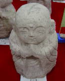 どの作品もすばらしく、初心者とは思えない物もあります。ここに通う人は宇土市だけでなく、熊本市や玉名市の方もいました。高さ40cmほどのこの地蔵は、宇土市の特産品・馬門石(まかどいし)で造られています。馬門石は凝灰岩の仲間で、ピンク色です。この石の建造物としては、船場橋(コミュニティハウスの近くの眼鏡橋)や轟水源から引かれた轟泉水道が有名です。