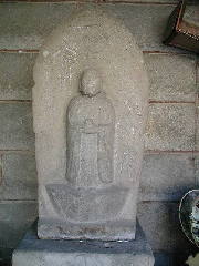 (石仏) 舟型の光背付き地蔵菩薩の立像です。写真でもわかるように、両手で宝珠を持っています。この石仏は享保7年(1722年)の建立です。この年には、二体だけの建立です。光背の大きさに対して地蔵が小さいような気もします。