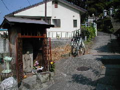 (場所) 熊本市春日4丁目にあります。北岡神社裏の花岡山への車道を少し進み(200m位)、右手の旧登山道(墓地)入り口。小さなお堂です。平成11年8月訪問した時は、かぎがかかっていました。平成13年8月に再度見学したら中をのぞくことができましたので、写真を交換しました。