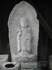 (石仏) 第9体は、地蔵堂の外の左側の石仏です。隣の無番号第4体に比べれば、それほど傷んではいません。仏像は右手に施無畏印、左手に与願印の阿弥陀如来の立像です。しかし、阿弥陀如来の下品上生のようにも見えます。台石はありません。この石仏は、享保9年(1724)の最初の建立になります。