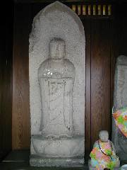 (石仏) 舟型光背付き地蔵菩薩の立像になっています。一般的な地蔵で、両手に宝珠を持っています。この石仏は、享保10年(1725)の建立です。