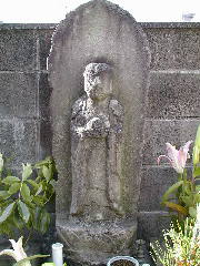 (場所) 住所は、熊本市大江1丁目 善行寺境内にあります。子飼橋の通りです。お寺の横にはニコニコ堂があり、また県道瀬田・熊本線の信号があります。地蔵は、バイクの横、ブロック塀の内側になります。
