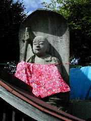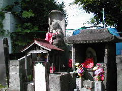 (場所) 熊本駅から南に進み、田崎陸橋を右手に見て直進します。この交差点のすぐ左に旧道があります。ここは小さな墓地になっています。この30体目Bの地蔵は台石も含めて190cmありますので、かなり大きな放牛地蔵です。すぐ右横に小さな39体目があります。
