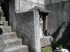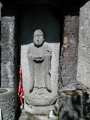 (場所) 熊本市横手5丁目の四方池にあります。四方池橋を渡り、直進します。変則の四つ角に出たら、やや右方向に進みます。写真のように細い階段の脇に小さな堂があります。狭い路地ですから、捜すときには車を降りていった方が良いでしょう。階段脇の小さな堂の中に納められています。