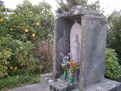 (備考) 以前撮影した写真は、私の勘違いで別の物を紹介していました。道端の地蔵さんは数多く、運良く出会っててっきり放牛石仏と思うこともしばしばです。平成13年12月1日、改めて訪問しました。表の道は旧街道になり、植木天満宮まで一本道です。途中に西南戦争の記念碑があります。官軍・乃木少佐の旗手を務めた河原林少尉が戦死して、軍旗を奪われた場所です。