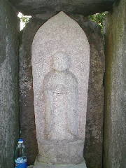 (場所) 熊本市から北上していくと、鹿本郡植木町向坂に向坂バス停があります。その手前に県警交通機動隊へ行く道がありますので、右折(東に)してください。そして、最初の四つ角を左折します。下り坂になりますが、左側に機動隊の建物、右側に県警自動車訓練場となります。坂を200mほど進んだ所の左側に、小原流(華道)の教室があります。そのすぐ右に、車一台が通れるほどの細い路地があります。5mほど進みますと、左側に石段があり、それを登ればこの石仏に対面できます。大変捜しにくい場所で、まさかこんな所にと思ったほどです。