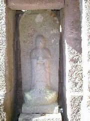 (場所) 住所は、熊本市河内町大多尾にあります。芳野小学校の近くに、県道が交わる大きな交叉点があります。ここには理容店やガソリンスタンドもあり、案内板も設置してあります。ここから、理容店の左がわ、県道332号線(小天・下硯川線)に入ります。距離にして1.7kmのところに、大多尾があります。県道とはいうものの、広い道路ではなく山道といった感じです。大多尾に行きますと、まず日吉神社が現れます。そこに駐車場がありますので、車を置いて徒歩でいきます。鳥居の前に小さな橋があり、左手に大多尾公民館があります。その右側に路地がありますので、道に沿って200mほど登ります。途中には墓地があり、やがて薬師堂が左上に見えてきます。その薬師堂の右に、この第40体Bの地蔵があります。