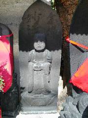 (石仏) 両手に宝珠を持っている地蔵菩薩の立像です。仏像も含めて黒く塗られているように思います。というのも、48体目の鼻の部分が欠けて地肌が見えていますが、そこだけは灰色だからです。この石仏は、享保14年(1729)に建立されたものです。