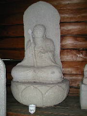 (石仏) かなり大きな地蔵菩薩の座像です。左手に宝珠、右手に錫杖を持っています。この石仏の特徴は、蓮華座と仏像が別々に彫られていることです。蓮華座も見事で、直径70cmの大きな物です。この石仏は、享保14年(1729)に建立されたものです。