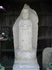 (石仏) 両手に宝珠を持っている地蔵立像です。光背が割れているのが気になりますが、文字の部分は残っています。この石仏は、享保14年(1729)に建立されたものです。